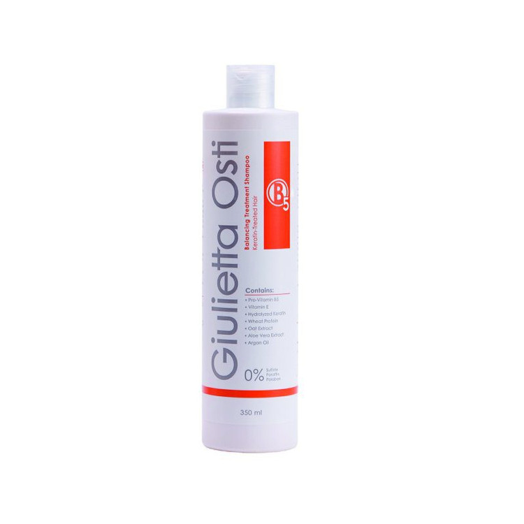 مواد تشکیلدهنده شامپو B5 بدون سولفات جولیتا اُستی شامل پرو ویتامین B5، ویتامین E، کراتین هیدرولیز شده، پروتئین هیدرولیز شده گندم، عصاره جو دوسر، عصاره آلوئه ورا و روغن آرگان میباشند.”